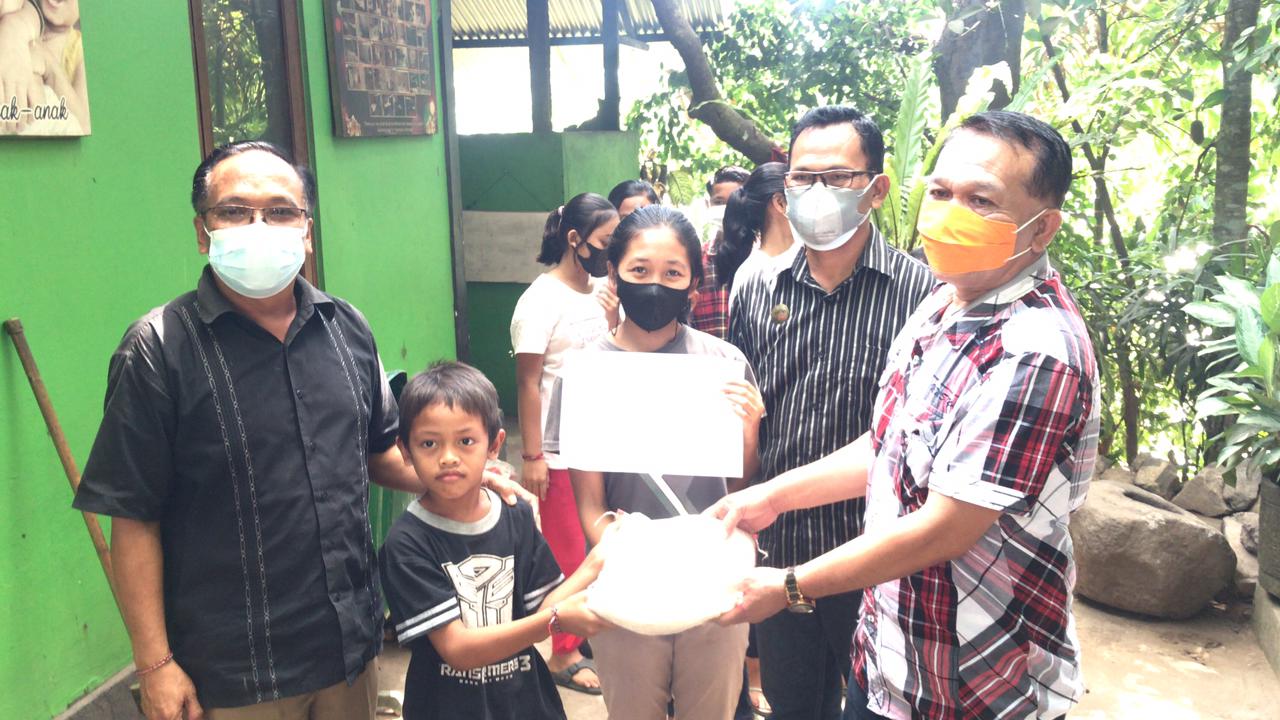 Kadis Sosial, I Putu Kariaman Putra,S.Sos,MM, mendampingi Kadis Sosial Pemberdayaan Perempuan Dan Perlindungan Anak Provinsi Bali ,I Dewa Gede Mahendra Putra,SH,MH beserta rombongan, dalam rangka pembagian 100 paket beras kepada yayasan panti asuhan.