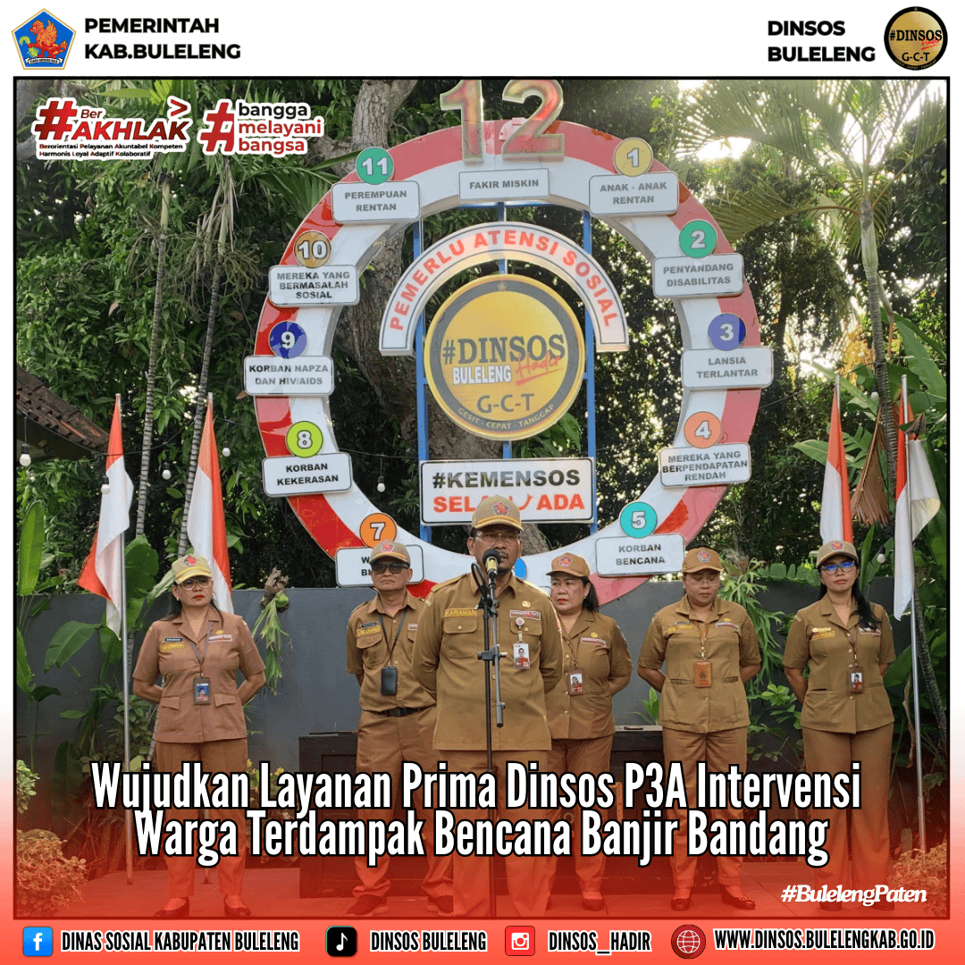 Dinas Sosial Pemberdayaan, Perempuan dan Perlindungan Anak Kabupaten Buleleng gelar apel pagi rutin bertempat di halaman depan Kantor Dinas P3A Buleleng pada Senin (9/3/2026) pagi dengan fokus pada penguatan layanan bagi warga pemerlu atensi sosial, khususnya masyarakat yang terdampak musibah banjir bandang di wilayah Kecamatan Banjar dan Seririt beberapa waktu lalu