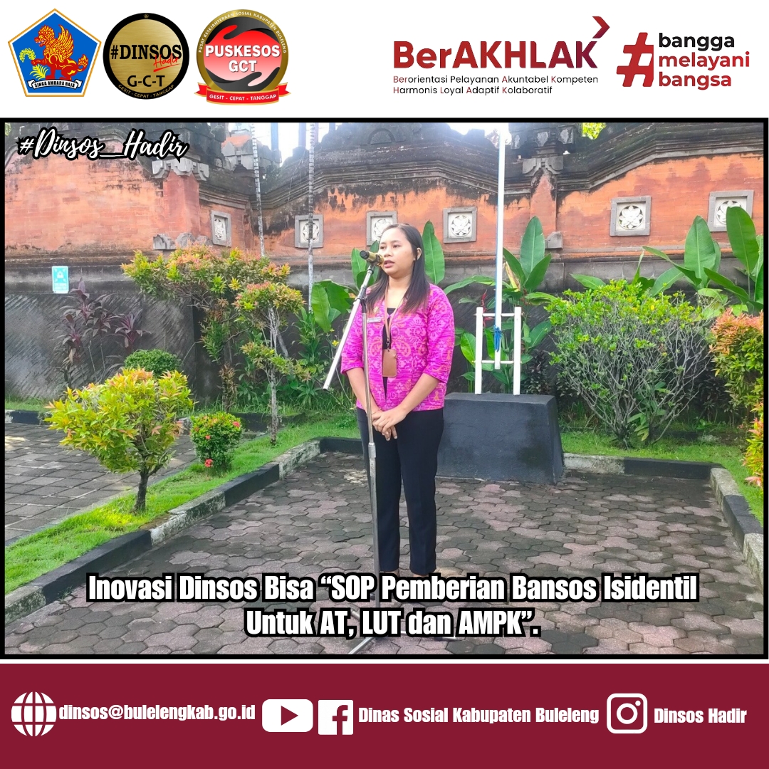 Program inovasi ‘Dinsos Bisa’ merupakan suatu gagasan yang dimiliki pimpinan unit kerja dalam rangka meningkatkan mutu kualitas SDM unggul, berkualitas dan mampu berdaya saing untuk bisa memaparkan seluruh SOP yang ada pada setiap kinerja di bidang lingkungan Dinas Sosial Kab.Buleleng di depan umum.