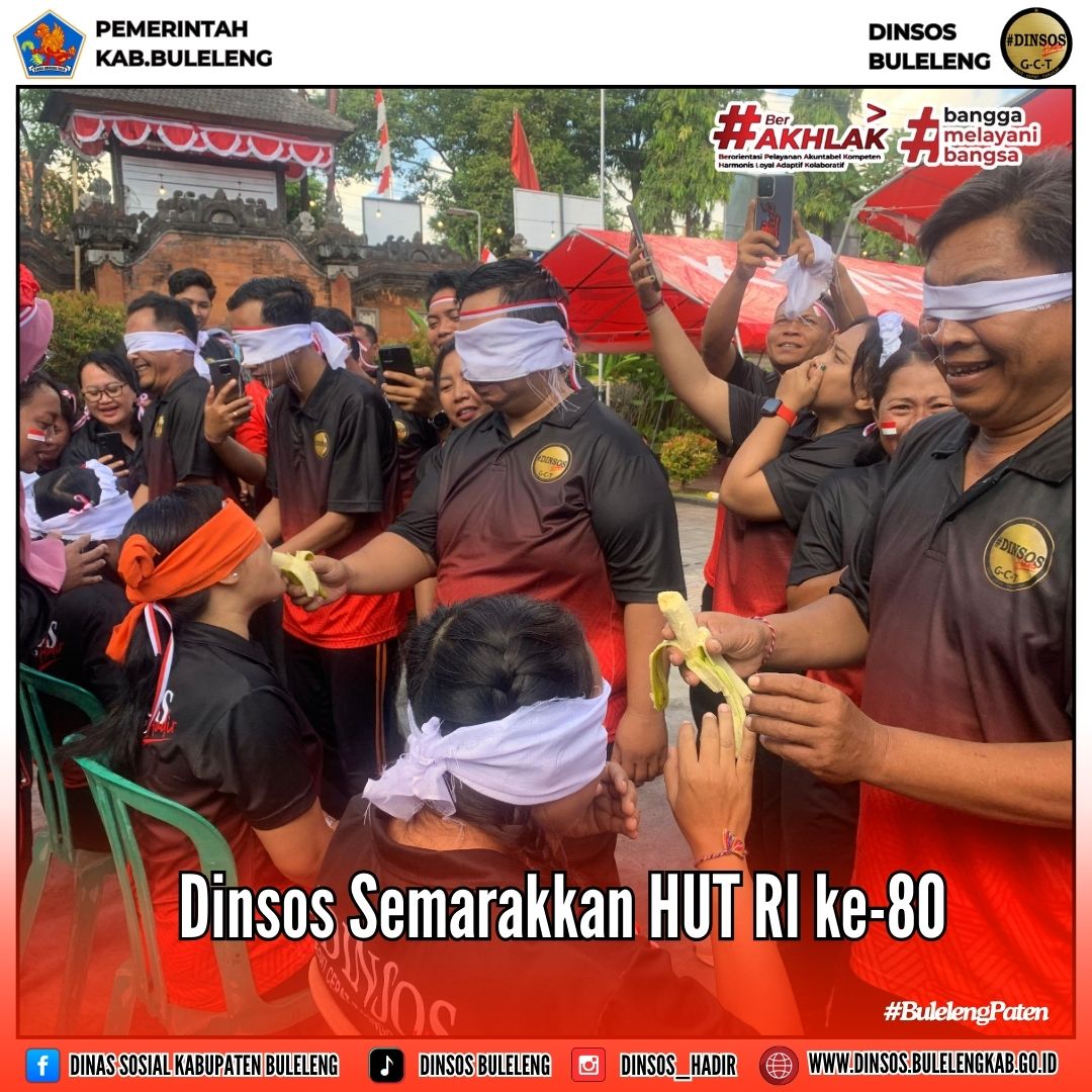 Dalam rangka memperingati Hari Kemerdekaan Republik Indonesia ke-80, Dinas Sosial Kabupaten Buleleng menyelenggarakan berbagai lomba internal yang penuh semangat kebersamaan dan nasionalisme. Kegiatan ini dilaksanakan di lingkup Dinas Sosial Kabupaten Buleleng.