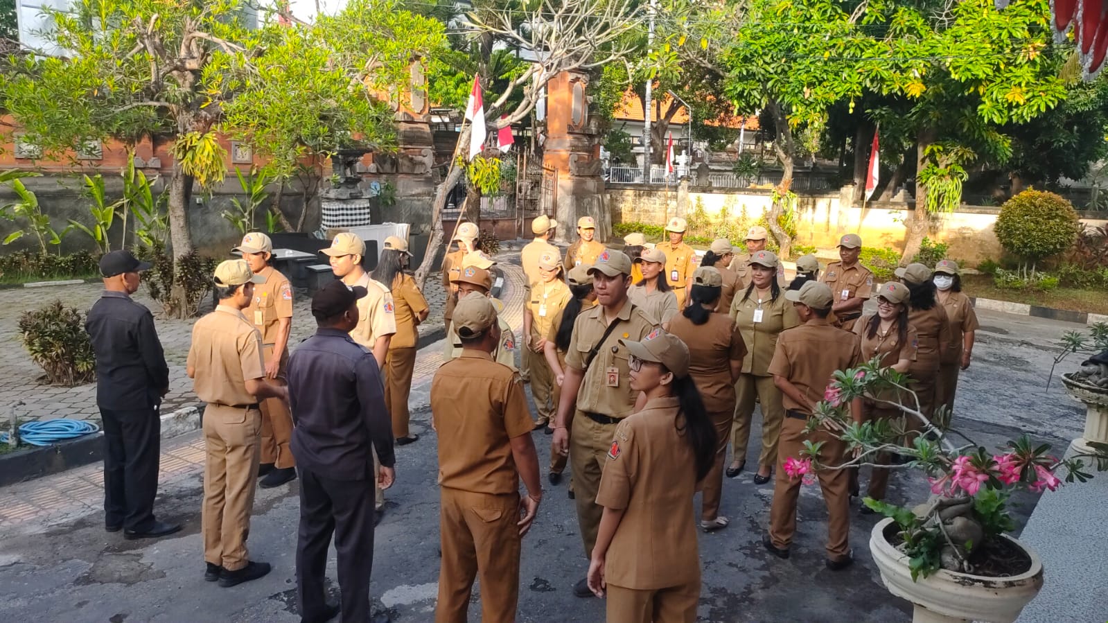 Bertempat dihalaman depan Dinas Sosial Kabupaten Buleleng, Apel kali ini sangatlah berbeda dengan apel sebelumnya, dimana Apel yang dipimpin langsung oleh Kepala Dinas Sosial Kab.Buleleng I Putu Kariaman Putra,S.Sos,MM ini model cara berbarisnya ASN dan Non ASN gabung sesuai dengan bidang masing-masing. Seperti biasa apel diikuti oleh Pejabat Struktural, Pejabat Fungsional, ASN dan Non ASN Dinsos Buleleng.