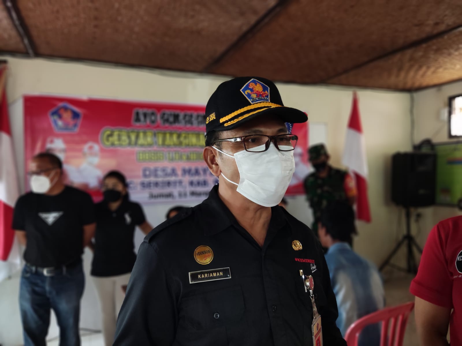 Bertempat di Kantor Desa Mayong, Kadissos I Putu Kariaman Putra, S,Sos MM yang di dampingi Kabid Dayasos, Nyoman Mariani Febrianti, S.Sos.M.A.P dan juga turut di hadiri oleh Kapolsek Seririt, Kepala Dinas Kesehatan, Perbekel Desa Mayong, Perangkat Desa, Pkh, dan Babinsa, Babinkamtibnas Pelaksanaan Vaksinasi di Desa Mayong dilaksanakan pada hari Jumat 11-Maret-2022 dan petugas teknis dari Puskesmas III Seririt dengan target yang dicapai adalah 1200Jiwa.