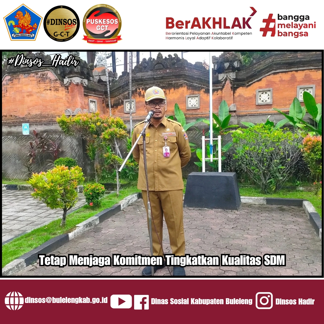 Kepala Dinas Sosial Kabupaten Buleleng I Putu Kariaman Putra,S.Sos,MM menyampaikan pertama akan terus memotivasi diri tetap menjaga komitmen dalam rangka meningkatkan kualitas SDM di internal baik integritas, kedisiplinan, Attitude dan kerjasama team dalam melaksanakan tugas dan pekerjaan, kedua kita patut bersyukur Kabupaten Buleleng dipercaya kembali oleh Pemerintah Provinsi Bali dalam rangka menyambut Hari HKSN, Hari Disabilitas Nasional dan Hari Ibu yang akan terselenggara nanti tanggal 20 Desember 20214 tepatnya di Desa Mayong, Kecamatan Seririt, Kabupaten Buleleng.