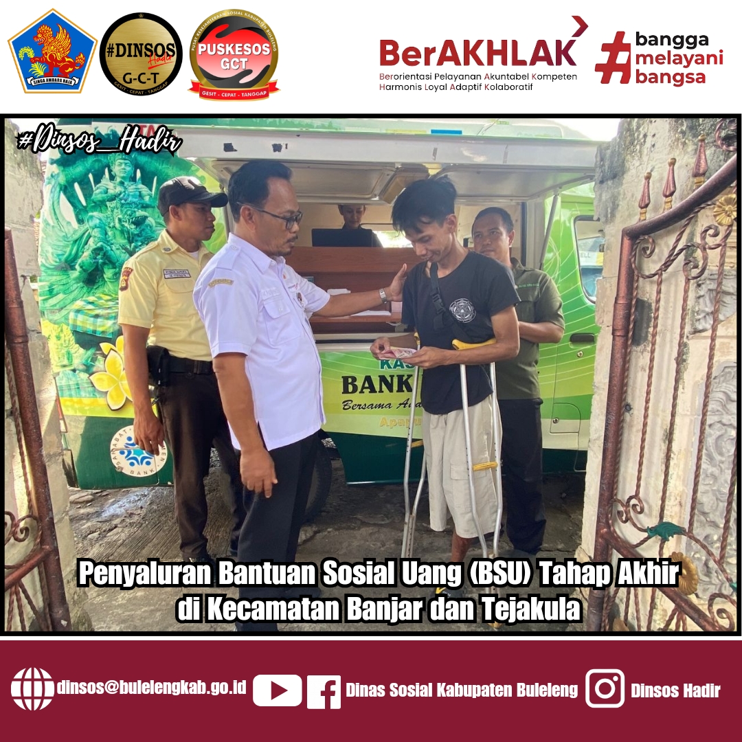 Dalam upaya mengentaskan kemiskinan, Pemerintah Kabupaten Buleleng telah melaksanakan berbagai program, salah satunya melalui Dinas Sosial dengan mengucurkan program Bantuan Sosial Uang (BSU). Program ini ditujukan kepada Penyandang Disabilitas kurang mampu yang belum mendapatkan program bantuan sosial serta masyarakat kategori kemiskinan ekstrem yang terdaftar dalam Data Terpadu Kesejahteraan Sosial (DTKS) Non Program.
