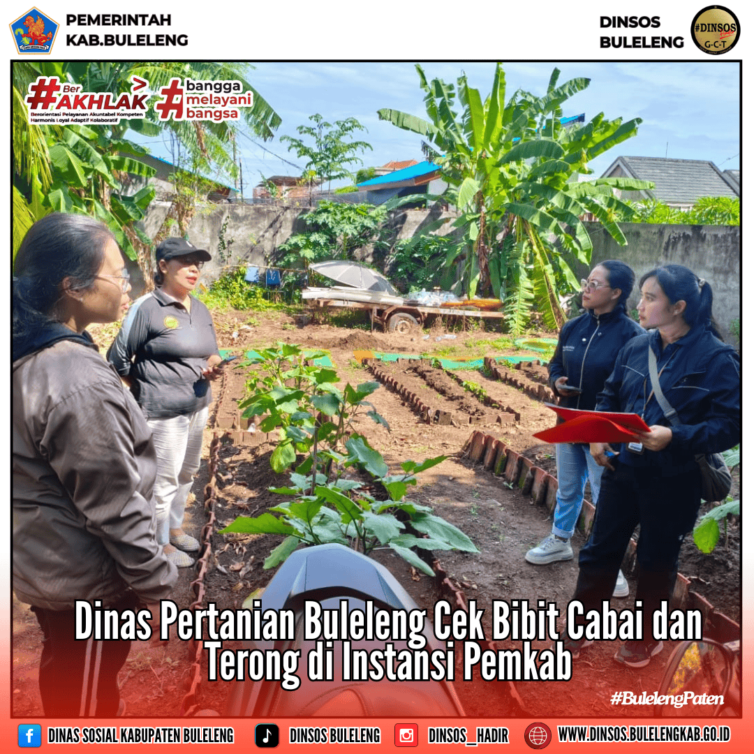 Dinas Pertanian Kabupaten Buleleng melaksanakan kegiatan pengecekan bibit tanaman cabai dan terong yang ditempatkan di setiap instansi Pemerintah Kabupaten Buleleng. Kegiatan ini dilakukan sebagai bentuk pembinaan dan pengawasan terhadap pemanfaatan lahan pekarangan di lingkungan perkantoran, sekaligus untuk memastikan bibit yang ditanam berada dalam kondisi sehat dan siap tumbuh optimal.