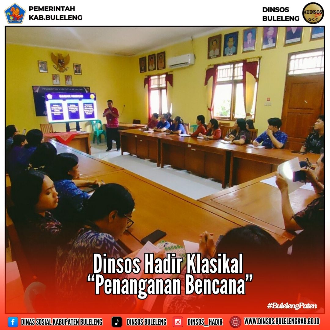 Dalam kesempatan tersebut, Yayan memaparkan sejumlah materi penting yang berkaitan langsung dengan penanganan bencana. inovasi Dinas Sosial Buleleng dan dilaksanakan setiap hari kerja Senin s/d Kamis pada Pukul. 13.30- 15.30 Wita yang diikuti oleh seluruh SDM yang ada pada bidang Sekretariat, Umum keuangan dan Staff pelayanan MPP.