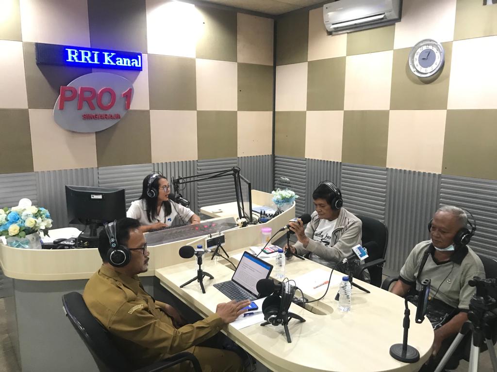 Kepala Dinas Sosial Buleleng, I Putu Kariaman Putra,S.Sos,MM yang didampingi Pensiunan PNS Undiksha, Romi Suditha dan Pensiunan Pegawai LP, Ketut Wediana Giri dalam giat Dialog Interaktif yang diselenggarakan oleh Radio Republik Indonesia Pro 1 Singaraja (29/5).
