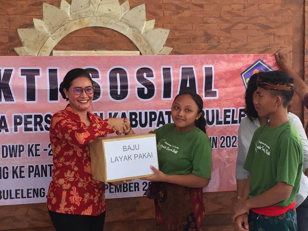 Gerakan bakti sosial menjadi kegiatan rutin yang selalu diagendakan Dharma Wanita Persatuan (DWP) Kabupaten Buleleng setiap tahunnya. Hari ini, memperingati hari jadinya yang ke- 24 tahun, DWP Kab.Buleleng menyerahkan bantuan sosial (bansos) kepada kepada Anak Yatim, Piatu/Yatim piatu dan Lansia terlantar bertempat di 3 lokasi yakni PSAA "Udayana Wiguna" Singaraja, LKSA Anak Domba Bali Desa Tegalinggah dan Panti Sosial Tresna Werdha " Jara Mata Pati" Di Desa Kaliasem Kec. Banjar.