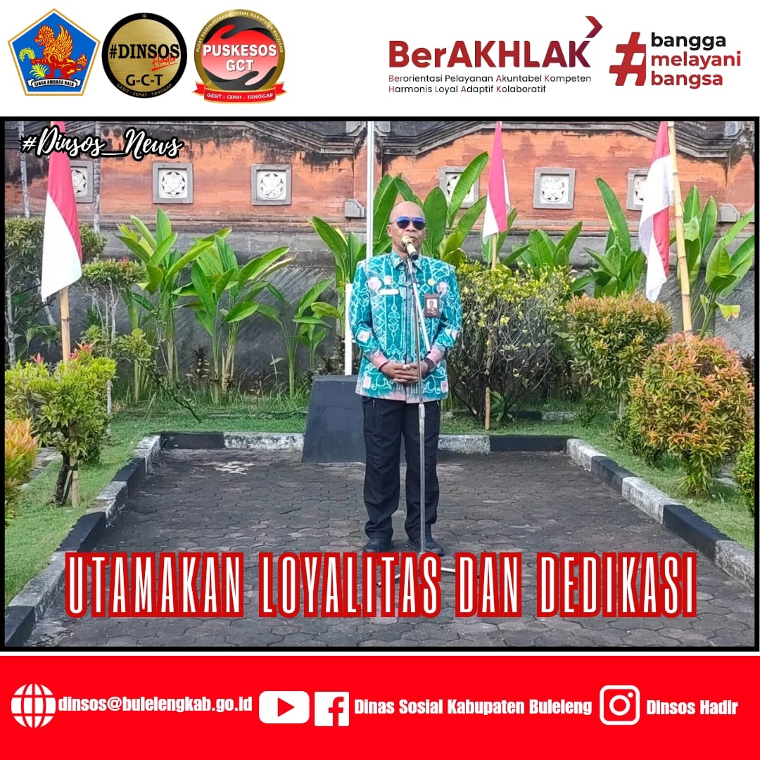 Bertempat dihalaman depan Kantor Dinas Sosial Kab.Buleleng, kegiatan apel pagi yang dipimpin langsung oleh Sekretaris Dinas Sosial Kabupaten Buleleng Putu Gopi Suparnaca,S.Sos mewakili Kepala Dinas Sosial Kab.Buleleng I Putu Kariaman Putra,S.Sos,MM diikuti oleh seluruh pejabat struktural, ASN, P3K dan Non ASN.