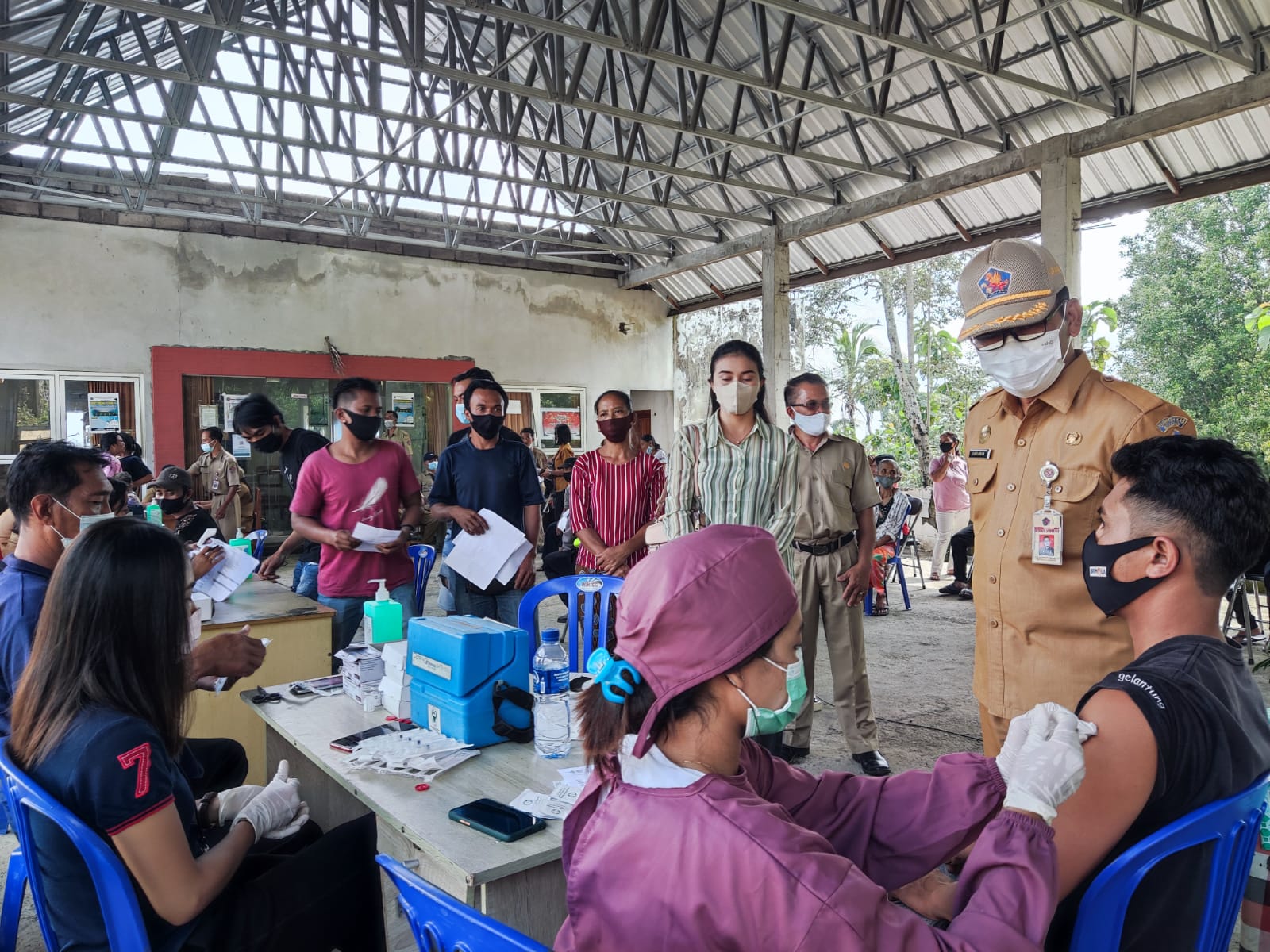 Bertempat di Gedung Serbaguna Kantor Desa Tigawasa Kadissos I Putu Kariaman Putra, S,Sos MM bersama Kepala Bidang Linjamsos Yayan Sutrisna,S.Sos, Dinas Kesehatan, , Pkh, Babinsa dan Babinkamtibnas. Pelaksanaan Vaksinasi di Gedung Serbaguna Desa Tigawasa dilaksanakan pada hari ini Senin 14 Maret 2022 sesuai dengan arahan pimpinan Pemerintah Daerah Kabupaten Buleleng terkait pencapaian vaksinasi booster 30?, pelaksanaan WFO, dan pembelajaran tatap muka terbatas (PTMT) sesuai hasil rapat di Ruang Unit IV Setda Kabupaten Buleleng.