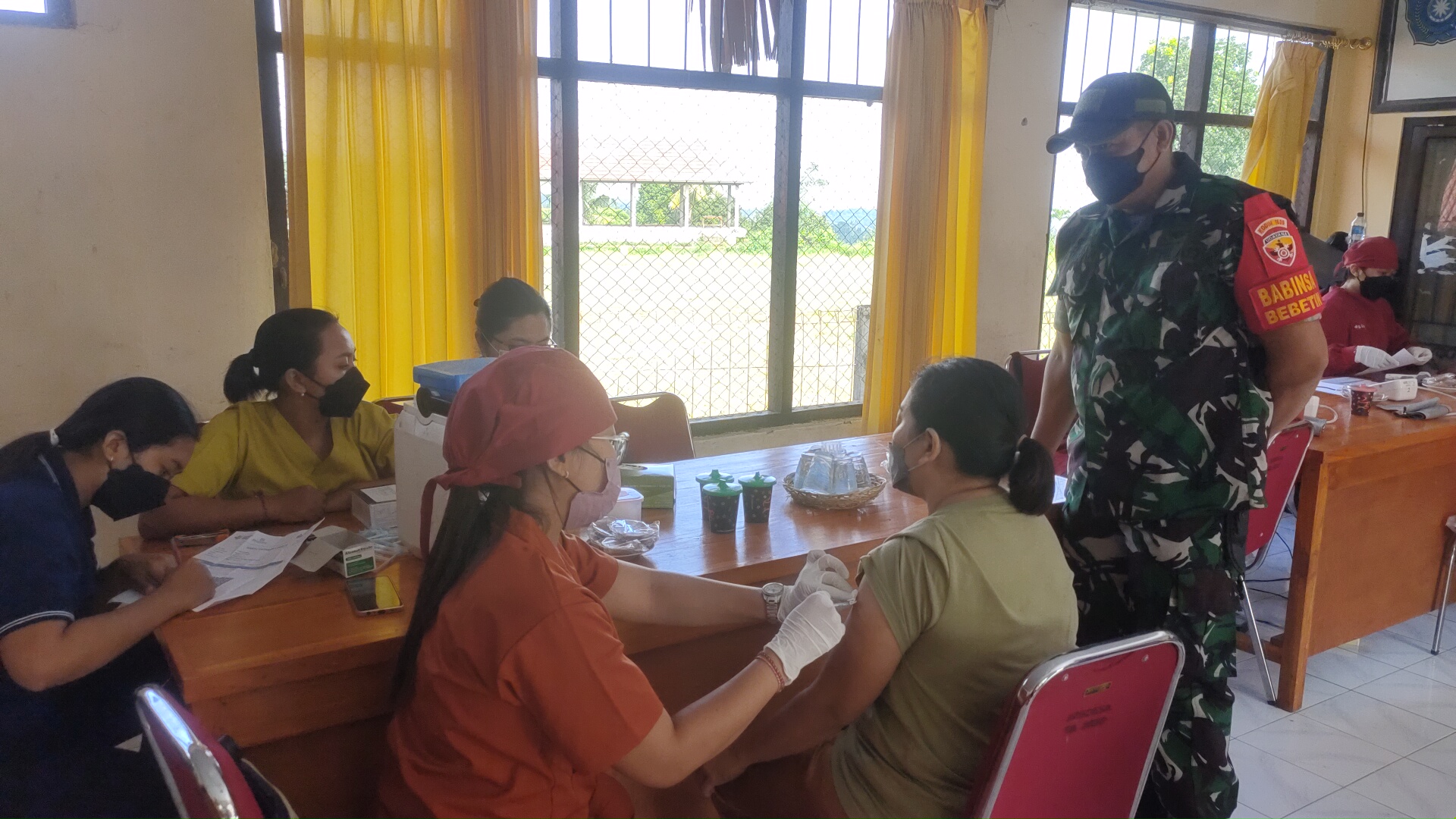 Bertempat di Puskesmas Pembantu Desa Bebetin,Kec.Sawan Kadissos I Putu Kariaman Putra, S,Sos MM menugaskan Staf Dinsos Kab. Buleleng Bidang Umum dan Keuangan Pelaksanaan Vaksinasi ini melibatkan Tenaga Kesehatan dari Puskesmas Sawan II tersebut.