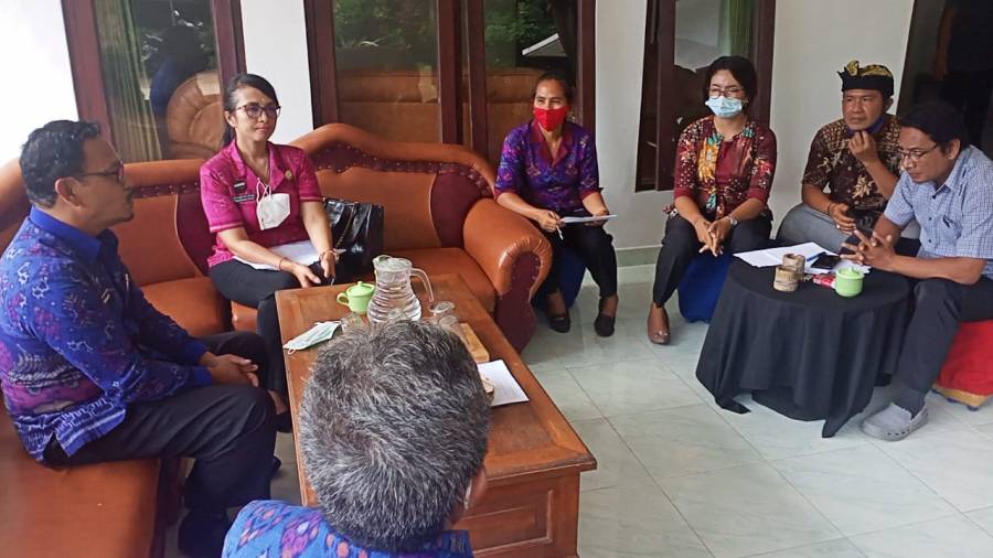 Kadis Sosial Buleleng I Putu Kariaman Putra,S.Sos,MM bersama Kabid Pemberdayaan Sosial dan Penanganan Fakir Miskin Nyoman Mariani Febrianti,S.Sos,M.AP, Kasi Pemberdayaan Sosial Perorangan, Keluarga dan Kelembagaan Sosial Nyoman Sutama,SH, didampingi TKSK Tejakula Gede Sanjaya melakukan Monitoring evaluasi terkait program inovasi Dinsos Buleleng yakni Pembentukan Puskesos Desa/Kelurahan.
