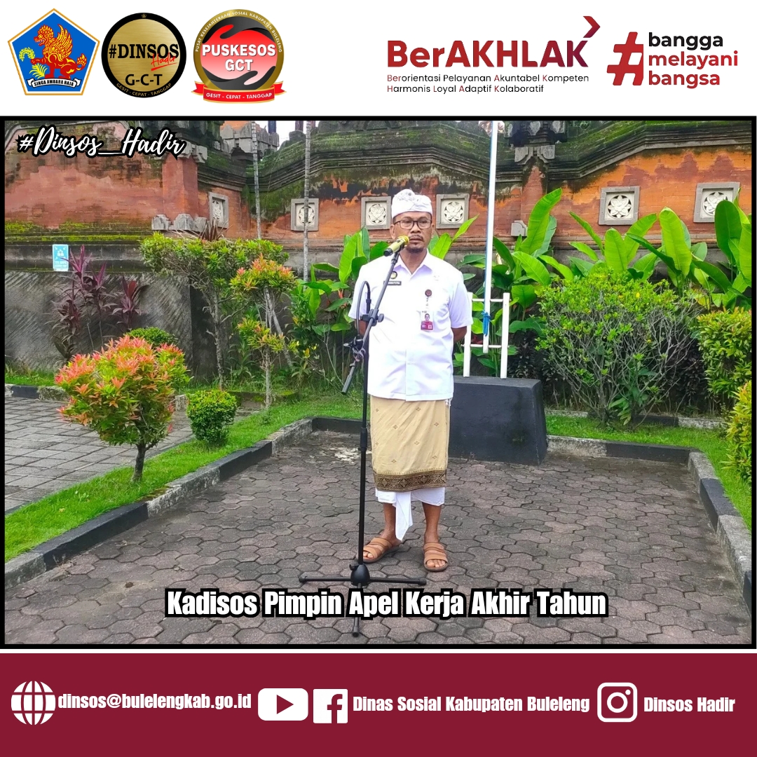 I Putu Kariaman Putra,S.Sos,MM selaku Kepala Dinas Sosial Kab.Buleleng saat memipmin apel pagi menyampaikan beberapa hal penting seperti tetap mengutamakan disiplin, integritas dan jadilah SDM yang berahlak, kedua dari hasil rapat kemaren malam khusus Dinas Sosial berkaitan dengan Dana Sharing, ketiga bagaimana caranya di tahun 2025 warga masyarakat berobat aktif JKN KIS nya, karena mainset warga masyarakat adalah dengan membawa KTP KIS bisa aktif kembali. Jadi ditahun 2025 yang akan datang lebih dimonitoring pelayanan JKN KIS jdi MPP (Mall pelayanan Publik) supaya lebih selektif, jangan sampai ada orang-orang yang tidak bertanggung jawab itu mendapatkan tempat di masyarakat. Dengan harapan Pelayanan KIS APBD bisa tepat sasaran diberikan kepada masyarakat yang benar-benar layak.