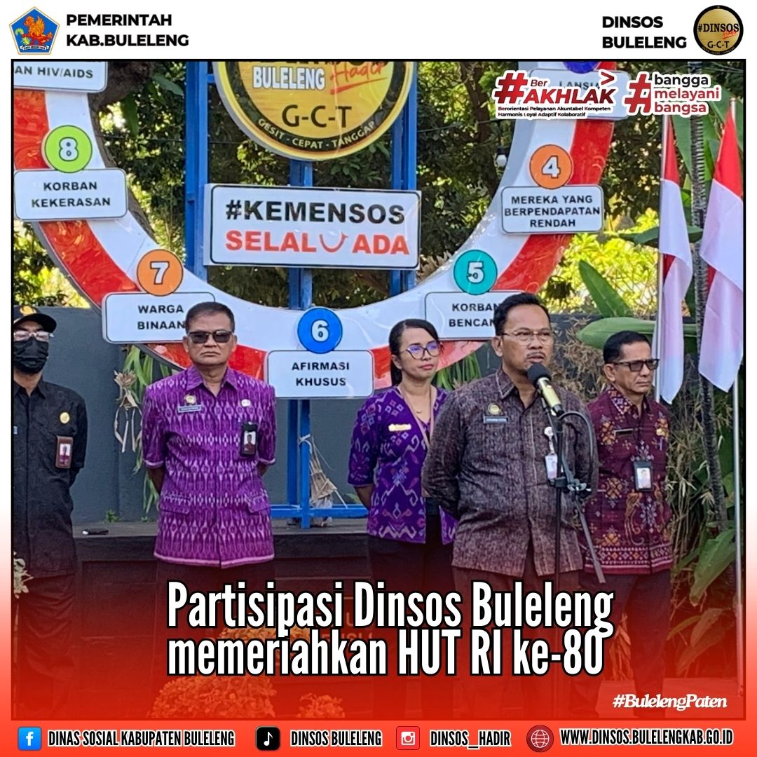 Dalam rangka memperingati Hari Ulang Tahun Kemerdekaan Republik Indonesia ke-80, Dinas Sosial Kabupaten Buleleng turut mengambil peran aktif melalui berbagai kegiatan sosial yang bertujuan memperkuat nilai-nilai kemanusiaan, solidaritas, dan kepedulian terhadap sesama.