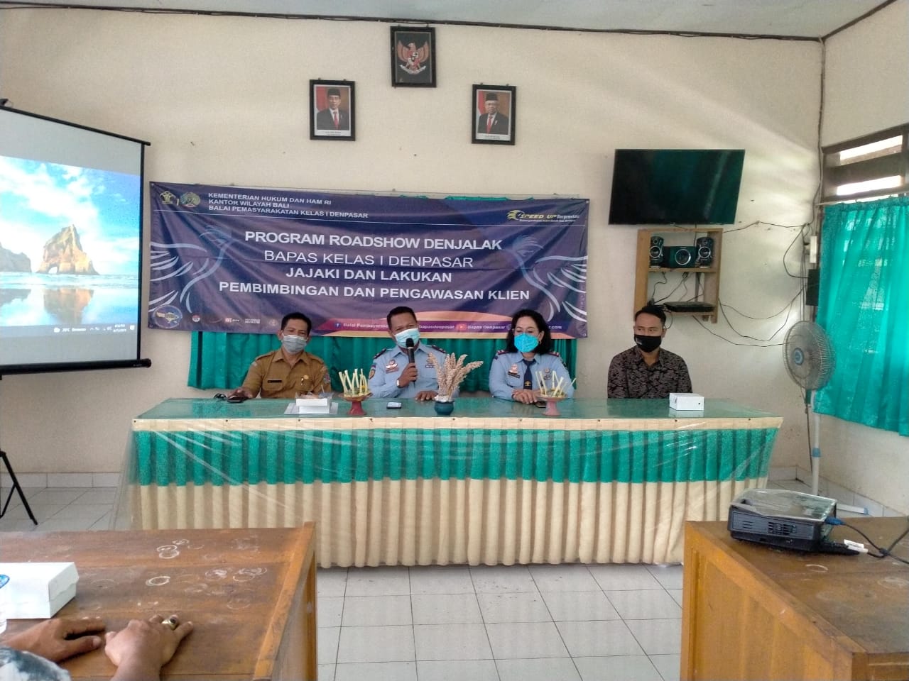 Kadis Sosial Kab. Buleleng I Putu Kariaman Putra, S. Sos, MM di Wakili oleh Kabid. Pelayanan dan Rehabilitasi Sosial Maman Wahyudi,S.Sos, Kasi Rehabilitasi Tuna Sosial Drs. I Gede Sutama mengikuti Program Roadshow Denjalak Bapas Kelas I Denpasar Jajaki lakukan Pembimbingan dan pengawasan Klien, di Kantor BPP Buleleng Dinas Pertanian Kab. Buleleng, Desa Tukad Mungga bersama Kepala Bapas Kelas I Denpasar, Ni Luh Putu Andiyani dan Kepala Lapas Kelas II B Singaraja-Bali.