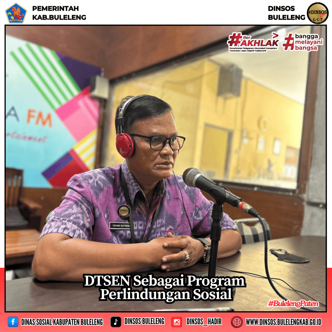 Data Tunggal Sosial dan Ekonomi Nasional (DTSEN) ini merupakan sebuah basis data tunggal individu dan atau keluarga yang memuat kondisi sosial ekonomi penduduk Indonesia dan telah dipadankan dengan data kependudukan. Ini digunakan untuk mendukung keterpaduan program pembangunan nasional dan sinergi antar kementerian, lembaga dan pemerintah daerah dalam rangka mencapai tujuan pembangunan yang terukur dan berkelanjutan". Hal tersebut disampaikan oleh Kepala Bidang Perlindungan dan Jaminan Sosial, Yayan Sutrisna,S.Sos yang dalam hal ini mewakili Kepala Dinas Sosial Kabupaten Buleleng, I Putu Kariaman Putra,S.Sos,MM dalam program acara dialog interaktif Geliat Buleleng di Radio Singaraja Fm, Selasa (2/12/2025).