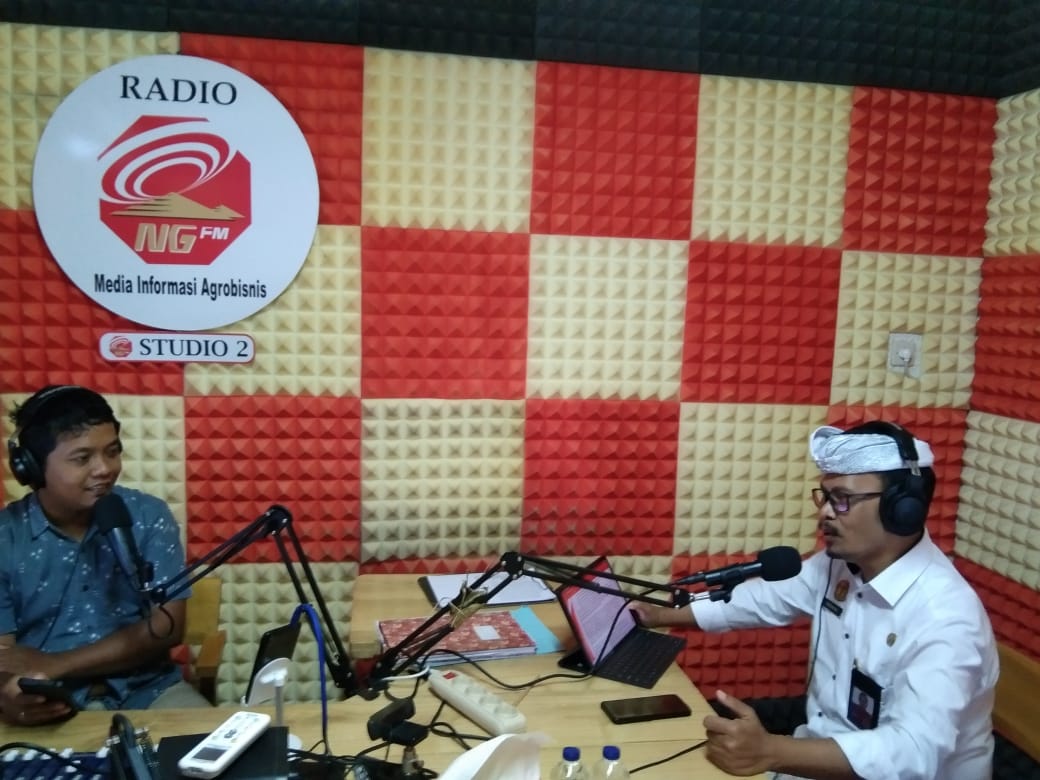 di Ruang Radio Nuansa Giri FM, Kepala Dinas Sosial Buleleng, I Putu Kariaman