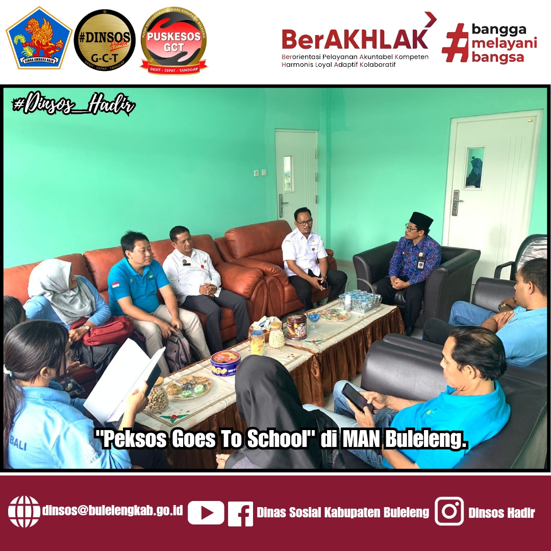 Kepala Dinas Sosial Kabupaten Buleleng I Putu Kariaman, S.Sos.MM. bersama Tim dari Sentra Mahatmiya Kemensos RI. dipimpin Kasubbag Tata Usaha Syahrunnadlir, SH. hadir langsung di MAN Buleleng diterima oleh Kepala sekolah Markhaban, S.pd., Mpd.I.