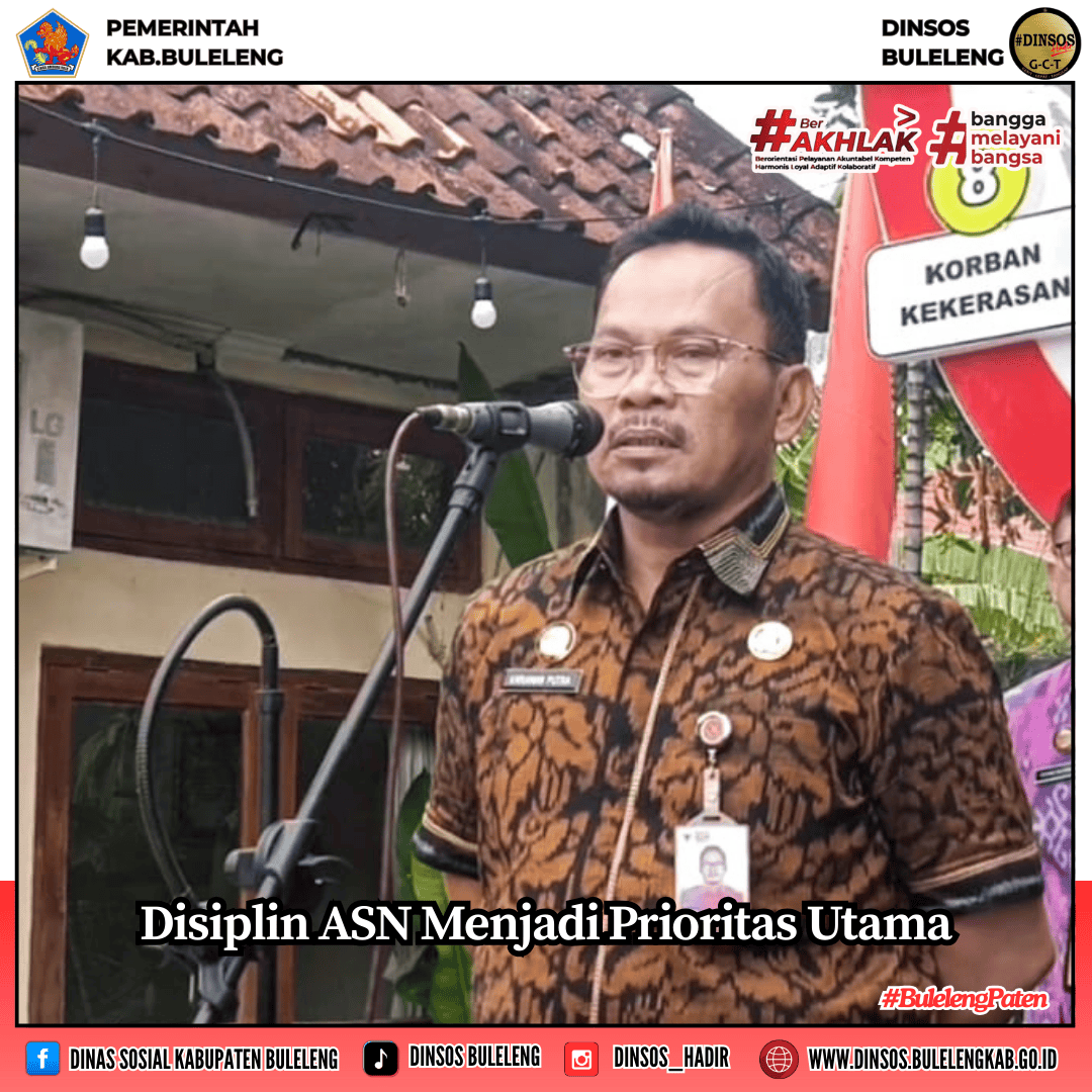 Pada apel pagi hari ini, Kepala Dinas Sosial Kab.Buleleng I Putu Kariaman Putra,S.Sos,MM menyampaikan arahan tegas namun penuh motivasi kepada seluruh Aparatur Sipil Negara, menekankan bahwa disiplin merupakan fondasi utama dalam menjalankan tugas dan pelayanan publik. Dalam penyampaiannya, Kepala Dinas mengingatkan bahwa setiap ASN memiliki tanggung jawab moral dan profesional untuk menjaga integritas, mematuhi aturan, serta menunjukkan keteladanan di lingkungan kerja.
