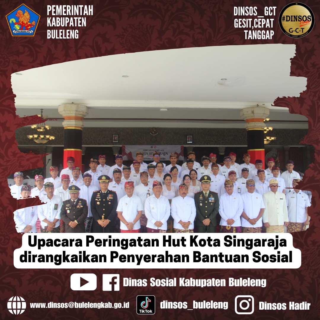"Namun, yang paling dinanti dalam peringatan HUT ke-421 Kota Singaraja kali ini adalah penyerahan bantuan sosial bagi masyarakat fakir miskin serta bantuan ini merupakan bentudan kepedulian kami terhadap warga Kabupaten Buleleng yang membutuhkan, semoga dapat bermanfaat dan membantu meningkatkan kesejahteraan masyarakat", tambahan dari Bupati Buleleng