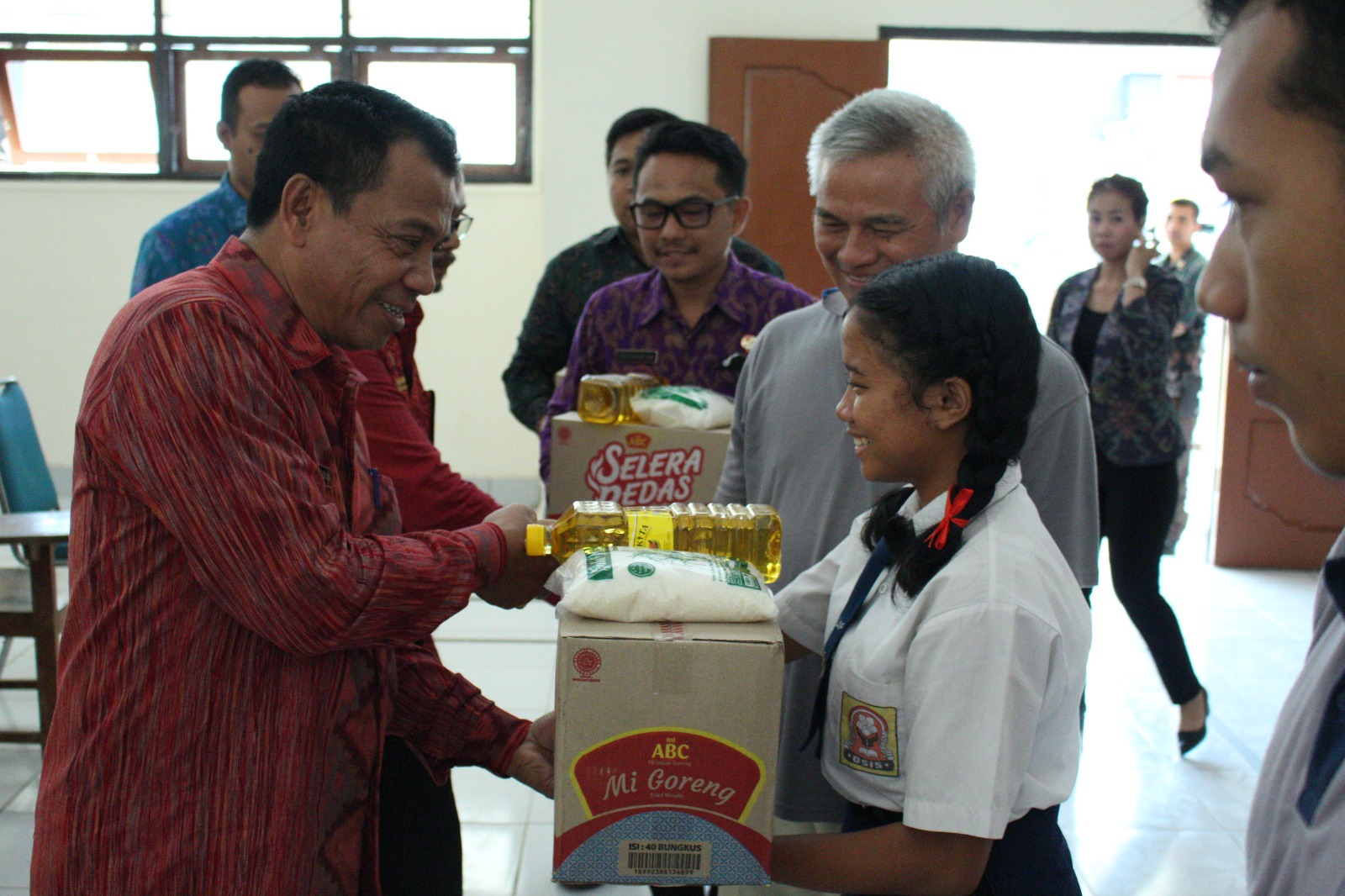Untuk diketahui sembako yang diberikan meliputi masing-masing minyak goreng 50 litter, beras 100kg, gula pasir 50kg, dan mie instan 50 dus. Kegiatan tersebut juga didampingi bersama, Kabid Dayasos, Kepala Panti Asuhan Dana Punia, serta Kepala Sekolah Smk N 2 Singaraja beserta staff.