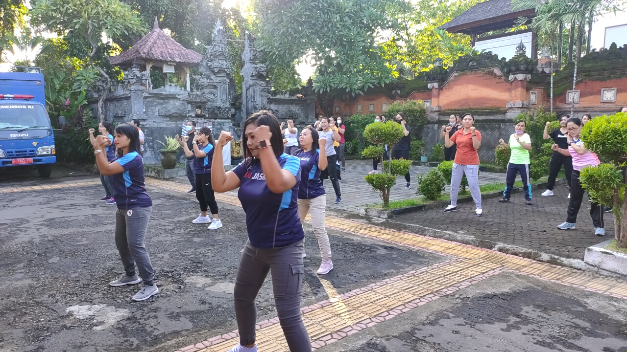 Bertempat dihalaman depan Dinas Sosial Kabupaten Buleleng Giat Dinsos hari ini melakukan Kegiatan Apel dan Senam sehat dengan tetap menerapkan Protokol Kesehatan.