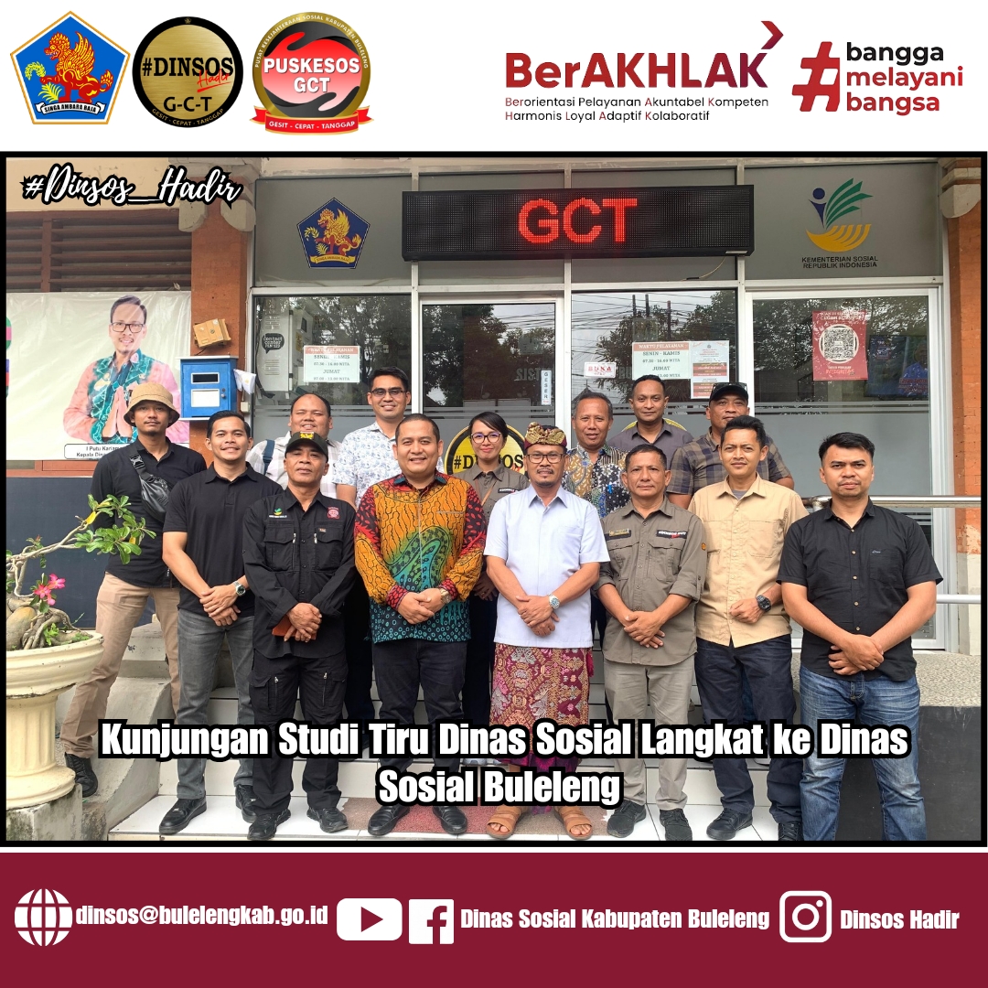 Dinas Sosial Kabupaten Langkat, Provinsi Sumatera Utara, melaksanakan kunjungan dan studi tiru ke Dinas Sosial Kabupaten Buleleng. Kunjungan ini dipimpin oleh Kepala Dinas Sosial Langkat, Taufik Rieza, S.STP, M.A.P, beserta 10 orang pegawai, dan diterima langsung oleh Kepala Dinas Sosial Buleleng, I Putu Kariaman Putra, S.Sos.MM, di ruang kerja Dinas Sosial Buleleng.