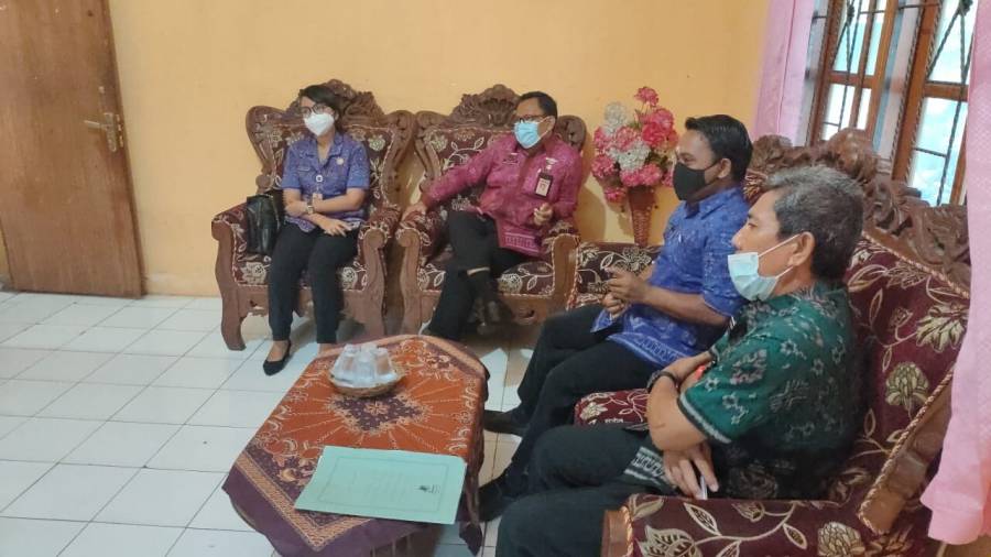Kadis Sosial Buleleng I Putu Kariaman Putra,S.Sos,MM bersama Kabid Pemberdayaan Sosial dan Penanganan Fakir Miskin Nyoman Mariani Febrianti,S.Sos,M.AP, Kasi Pemberdayaan Sosial Perorangan, Keluarga dan Kelembagaan Sosial Nyoman Sutama,SH, melakukan Monitoring evaluasi terkait program inovasi Dinsos Buleleng yakni Pembentukan Puskesos Desa/Kelurahan.