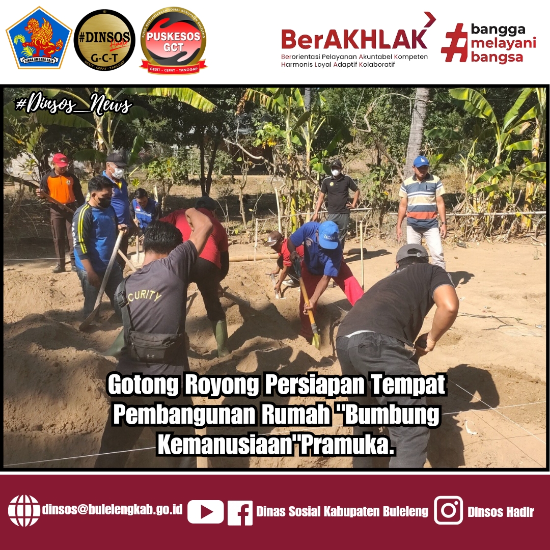Hadir langsung Kadis Sosial Kab.Buleleng I Putu Kariaman Putra,S.Sos,MM didampingi Sekdis Sosial Putu Gopi Suparnaca,S.Sos, Kabid, Tim Tagana Dinsos, Pramuka Buleleng, Pendamping PKH Kemensos RI dan seluruh SDM Pegawai laki-laki Dinsos Buleleng bergotong royong bersama-sama membantu membuat pondasi rumah warga calon penerima bantuan.