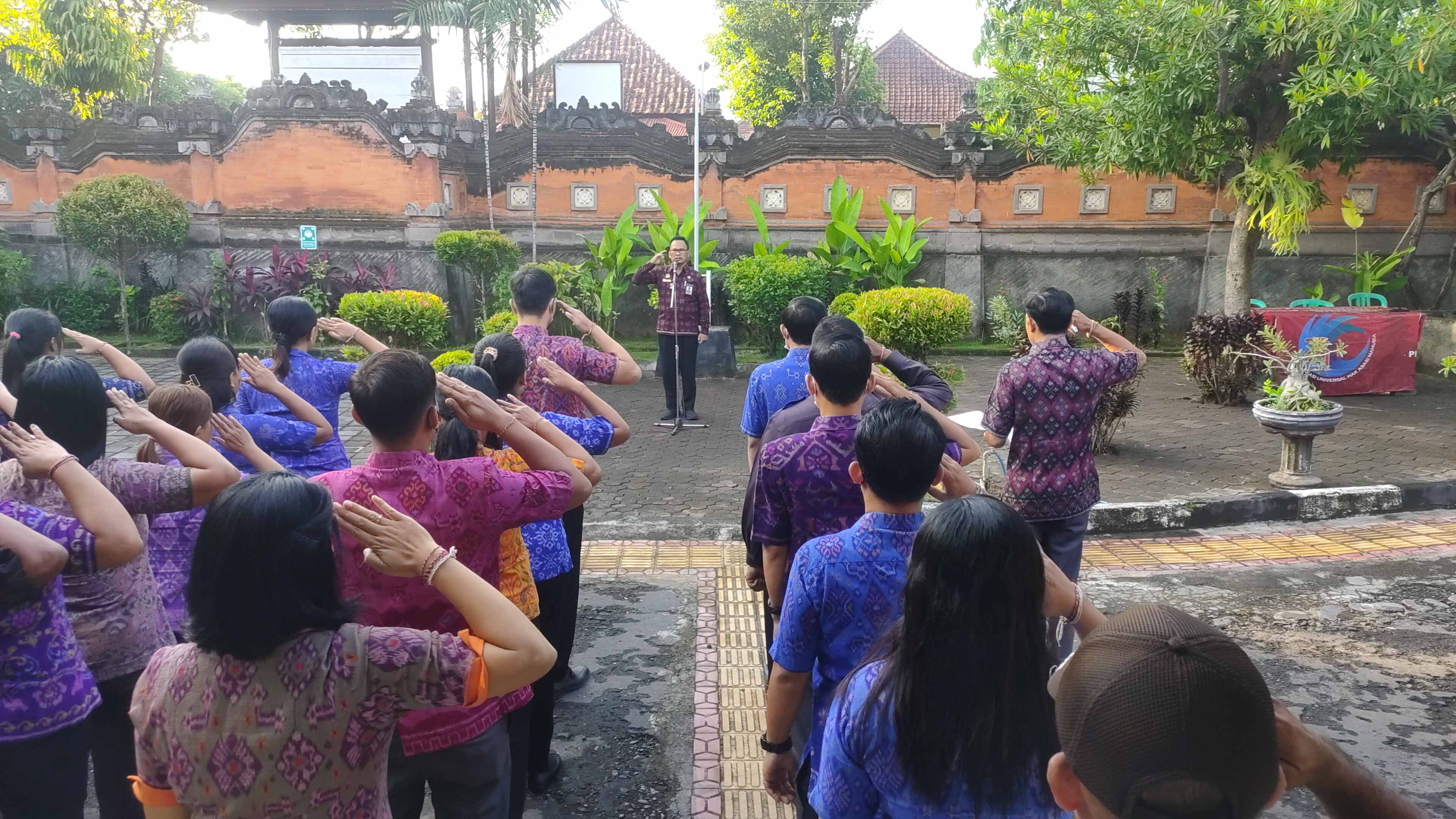 Bertempat dihalaman depan Dinas Sosial Kabupaten Buleleng, Apel pada kali ini dipimpin langsung oleh Kepala Dinas Sosial Kab.Buleleng I Putu Kariaman Putra,S.Sos,MM dengan diikuti oleh seluruh pegawai Dinsos Buleleng.