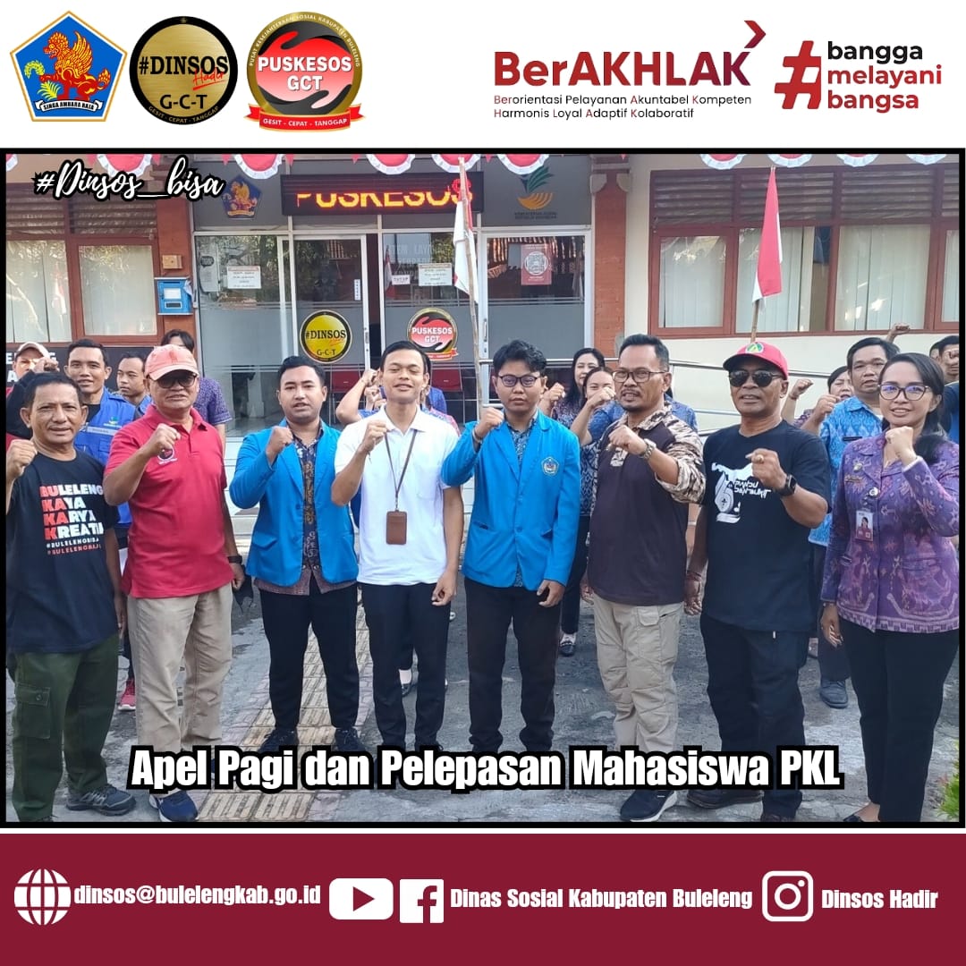 Bertempat di halaman depan Kantor Dinas Sosial Kabupaten Buleleng gelar apel pagi yang dirangkaikan juga pelepasan Mahasiswa Praktek Kerja Lapangan (PKL) Fakultas Ekonomi Unipas Singaraja yang berjumlah tiga orang. Apel kali ini dipimpin langsung Sekretaris Dinas Ssoial,Putu Gopi Suparnaca