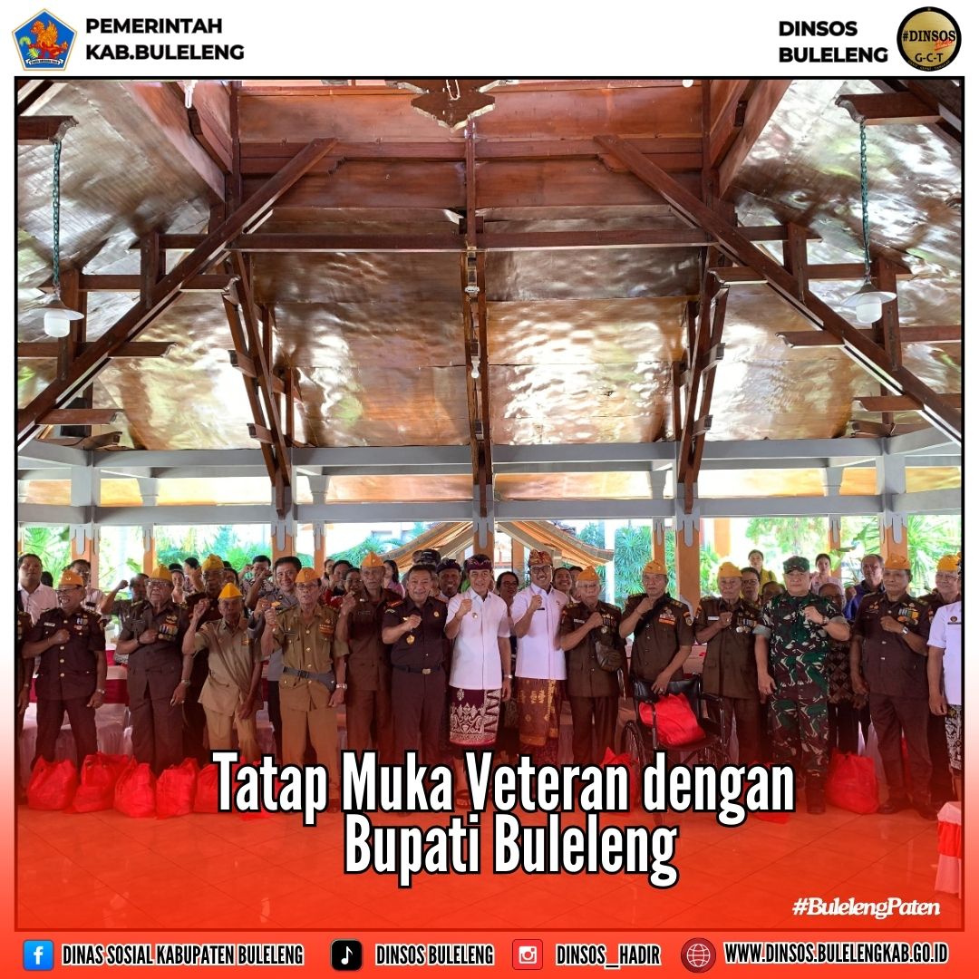 Serangkaian Hut Kemerdekaan RI ke-80 Tahun 2025 Pemerintah Kabupaten Buleleng melalui Dinas Sosial melaksanakan kegiatan Tatap Muka Veteran yang dirangkaikan dengan Peringatan Hari Veteran Nasional ke-76 Tahun 2025 bertempat di Wantilan Praja Winangun Kantor Bupati Buleleng.