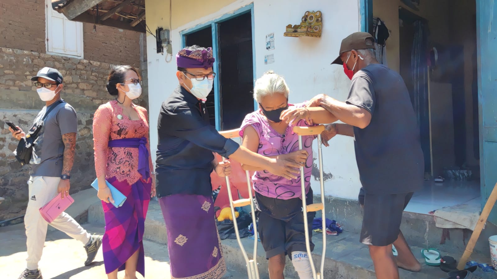 PENYERAHAN ALAT BANTU TONGKAT KETIAK KEPADA LANSIA DISABILITAS "NYOMAN SUCIANI"
