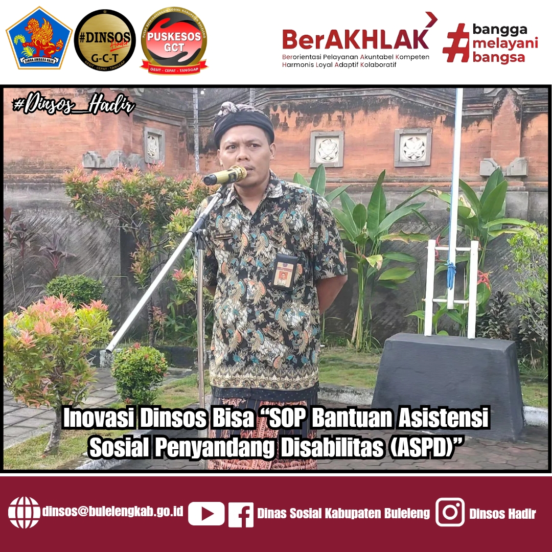 Program inovasi ‘Dinsos Bisa’ merupakan suatu gagasan yang dimiliki pimpinan unit kerja dalam rangka meningkatkan mutu kualitas SDM unggul, berkualitas dan mampu berdaya saing untuk bisa memaparkan seluruh SOP yang ada pada setiap kinerja di bidang lingkungan Dinas Sosial Kab.Buleleng di depan umum.