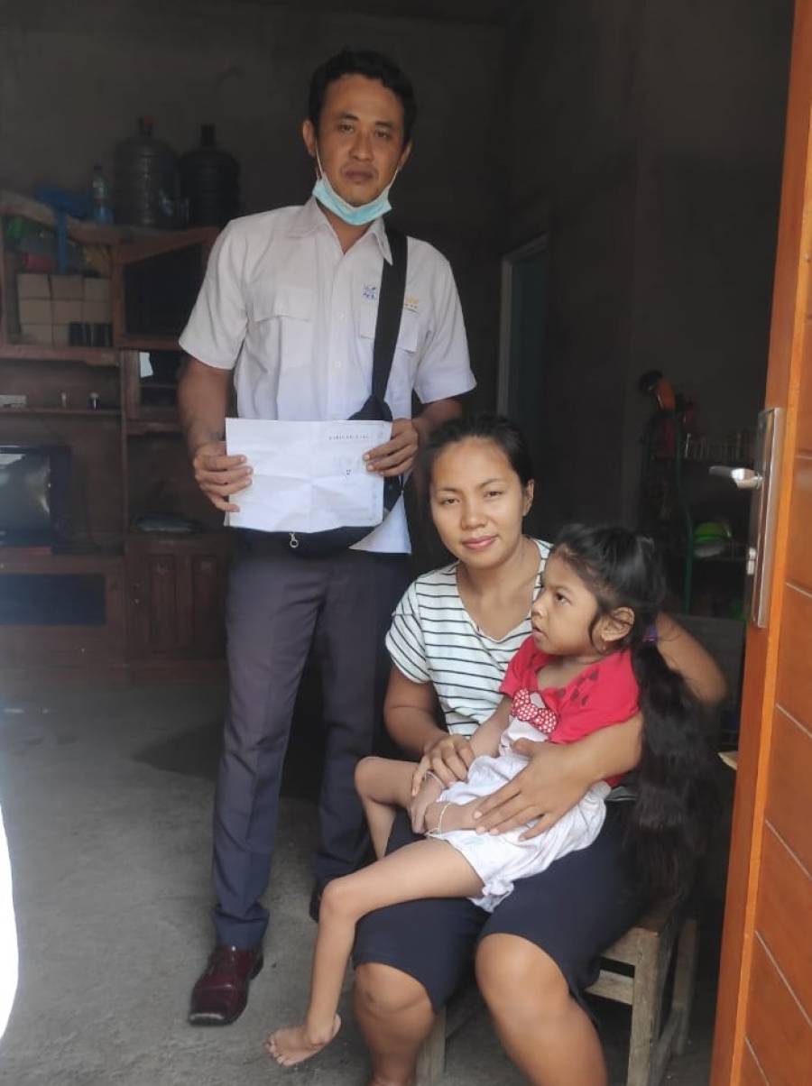 Assessment ini langsung direspon positif oleh keluarga An. Kadek Sutrisna Putri yang mengalami Disabilitas sejak berumur satu tahun, dimana Penyandang Disabilitas ini pernah sekali mendapat bantuan kursi roda dari donatur, namun yang bersangkutan belum pernah tersentuh bantuan oleh Pemerintah Pusat maupun Pemerintah Daerah dari berumur satu tahun sampai saat ini yang bersangkutan berumur 6 tahun. Orang tua yang bersangkutan hanya bekerja sebagai sopir tapi jarang bekerja karena situasi covid saat ini. Keadaan kondisi terkini Kadek Sutrisna Putri terkadang masih mengalami kejang di kaki.