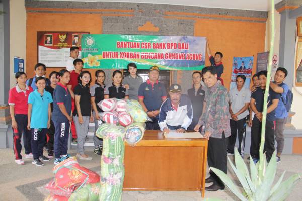 Bantuan 50 buah kasur dan 50 buah bantal guling ini merupakan bantuan yang ditujukan untuk Bencana Erupsi Gunung Agung, dimana bantuan ini merupakan bantuan yang telah direncanakan oleh Bank BPD Bali yang baru terealisasi pada anggaran BPD Bali cabang Singaraja. Sehingga bantuan ini akan disalurkan untuk Lansia yang dianggap kurang mampu di Kabupaten Buleleng