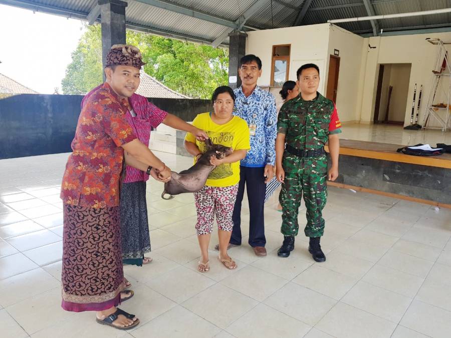 Pemerintah Kabupaten Buleleng melalui Dinas Sosial Kabupaten Buleleng mengadakan penyerahan bantuan bibit ternak babi untuk anggota KPM (Keluarga penerima manfaat) PKH di Desa Bengkel, Kecamatan Busungbiu, Kabupaten Buleleng.