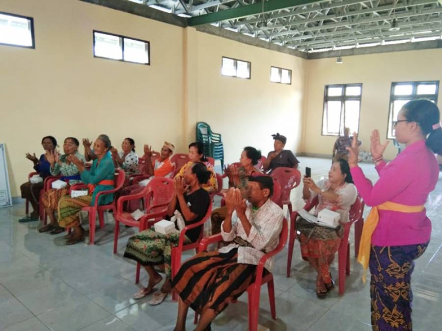 Pada sesi ini para lansia diajarkan senam jari sehat. Setelah kegiatan bimbingan UEP ini nantinya 15 orang Lansia ini akan diberikan bantuan berupa bibit ternak babi, dimana masing-masing lansia akan mendapatkan bantuan 2 ekor bibit ternak babi. Bantuan bibit ternak babi ini akan di drop pada tanggal 30 September 2019.