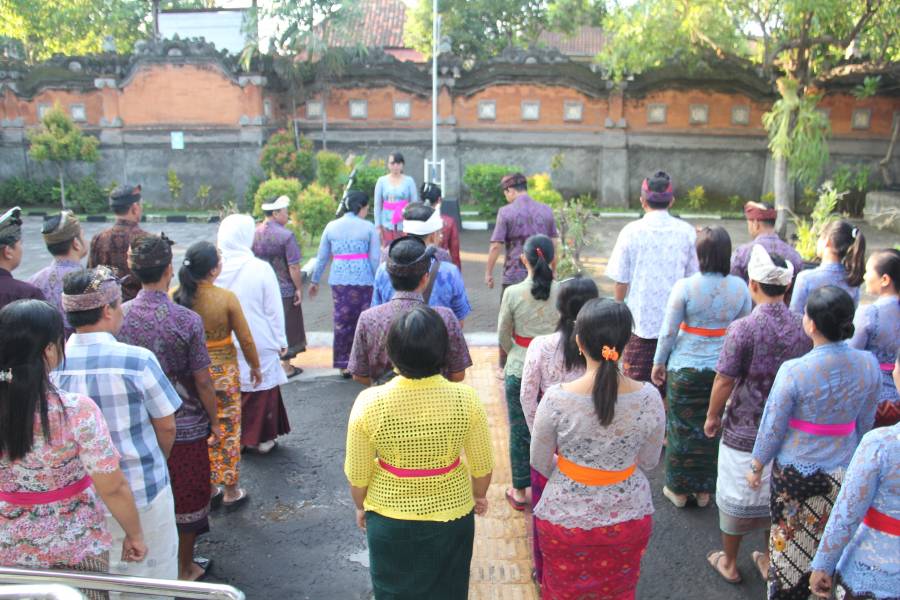 Apel pagi ini dengan mengkolaborasikan dengan berpakaian busana adat Bali sebagai wujud kearifan lokal maupun aturan Gubernur Bali setiap Hari Kamis menggunakan busana adat Bali yang tercantum pada Instruksi Gubernur Nomor 2231 tahun 2018. Etika pengguna busana adat Bali sesuai dengan nilai kesopanan, kesantunan, kepatutan, dan kepantasan yang berlaku di masyarakat. Busana adat Bali digunakan oleh pegawai di lingkungan lembaga pemerintahan, pendidik, tenaga pendidik, peserta didik, dan pegawai lembaga swasta