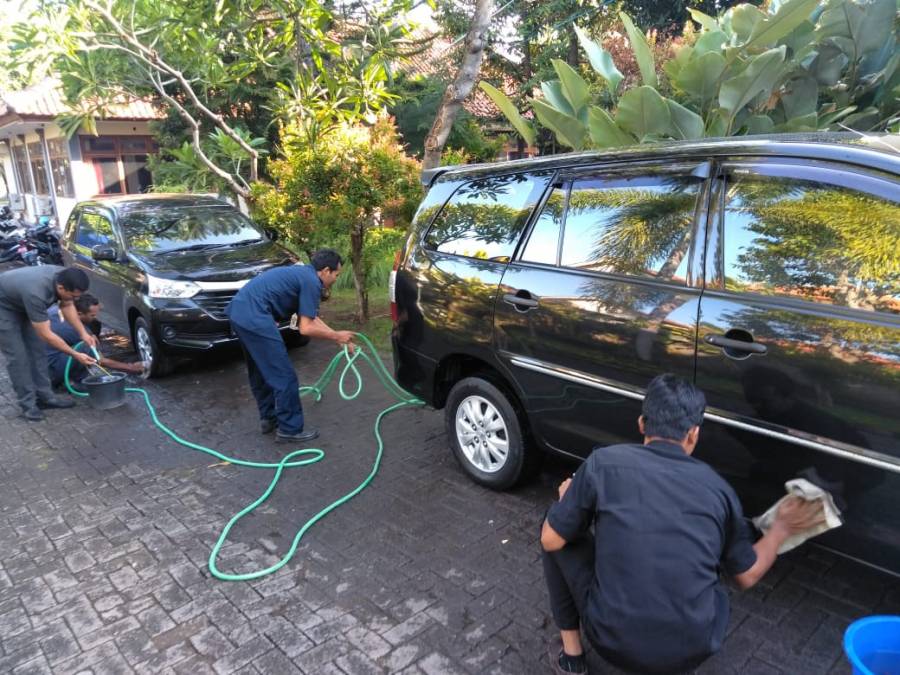 Senin (14/01) Para driver Dinas Sosial Kabupaten Buleleng melakukan kegiatan membersihkan mobil sebagai tugas rutinitas pagi.