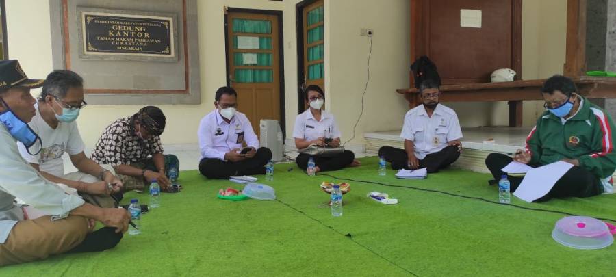Singaraja, 14 Oktober 2020, Kepala Dinas Sosial I Putu Kariaman Putra,S.Sos,MM didampingi oleh Kabid Pemberdayaan Sosial dan Pengangan Fakir Miskin Nyoman Mariani Febrianti,S.Sos.M.A.P dan Kasi Kasi Kepahlawanan, keperintisan dan Kesetiakawanan Sosial Gede Rejasa, SE pada kegiatan Koordinasi penyempuranaan tulisan nama Pahlawan dan Sebutan Gugur atau meninggal / wafat pada nisan di Taman makam Pahlawan (TMP) Curastana Singaraja.