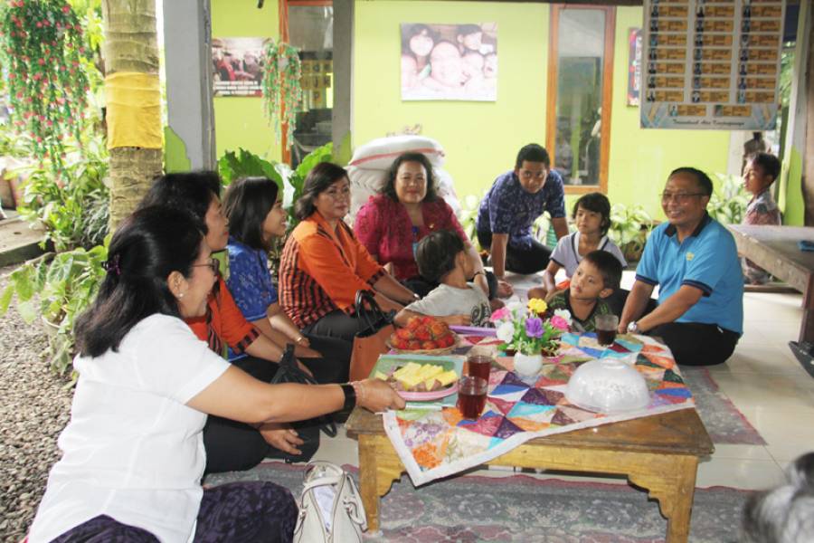 Ketua Koordinator kegiatan kesejahteraan sosial (KKKS) Kabupaten Buleleng Ny. Aries Sujati Suradnyana bersama Kepala Dinas Sosial Kabupaten Buleleng I Gede Sandhiyasa, S.Sos, M.Si menyerahkan bantuan sembako secara simbolis kepada pengurus Panti Asuhan / Yayasan Destawan, Kecamatan Sawan. Bantuan yang diberikan berupa beras, gula merah dan kacang hijau.