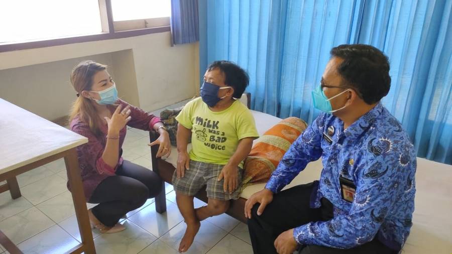 Kadis Sosial Buleleng I Putu Kariaman Putra,S.Sos,MM bersama Kasi Rehabilitasi Sosial Penyandang Disabilitas dan Relawan Sosial berkunjung ke LBK (Loka Bina Karya) Desa Kaliasem.