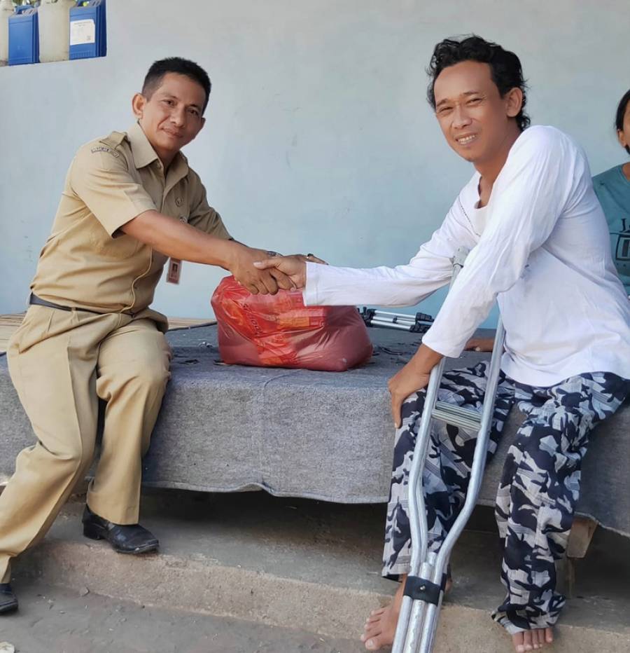 Pada moment kunjungan ini berlangsung juga penyerahan bantuan paket sembako dimana bantuan ini diterima langsung oleh I Gst Nym Wiharta. Semoga dengan adanya Dinsos turun langsung ke lokasi guna memberikan bimbingan ini dapat merubah pola pikir I Gst Nym Wiharta yang tadinya terus mengeluh di medsos menjadi berkurang. Semoga bantuan ini berguna dan bermanfaat.