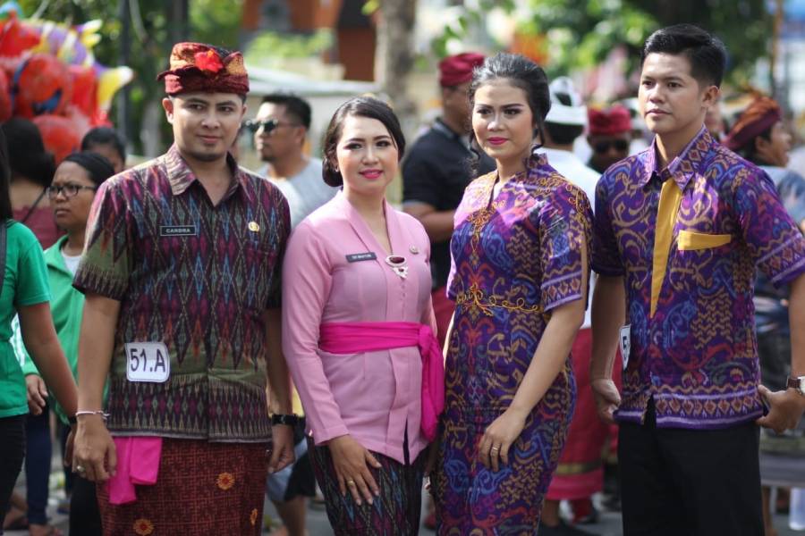 Dalam rangka memeriahkan HUT Kota Singaraja yang ke 415 Dinas Sosial Kabupaten Buleleng mengikuti lomba pakaian adat kerja endek dalam festival parade budaya.