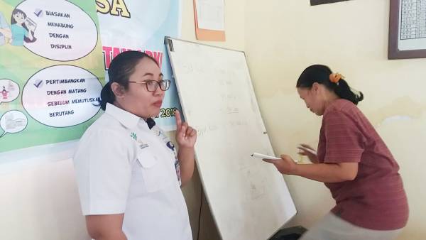 “Iyang tumben melajah ane kene bu biasane ngelah pipis malunan telah, jeg kuangan den” senang rasanya ibu Wayan Sriatini (41Th) dapat belajar modul ekonomi ini yang dirasakan sangat bermanfaat dimana sebelumnya belum pernah terpikirkan sama sekali dalam mengelola keuangan keluarga ujarnya. Sambil berjalan kedepan menyampaikan hasil diskusi kelompoknya. Penulis Dewa Pratama (Pekerja Sosial Supervisor)