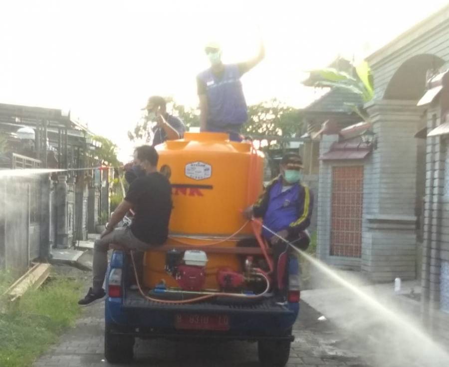 Senin (20/04) Upaya Dinsos Buleleng mencegah penyebaran Novel Coronavirus (COVID-19) melalui penyemprotan desinfektan di wilayah Kecamatan Sukasada.