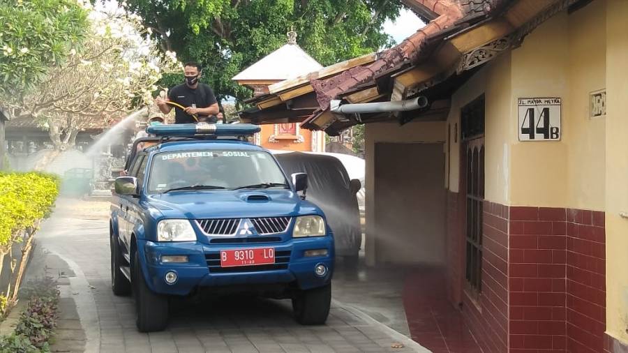 Untuk menekan penyebaran virus corona atau covid-19 Dinsos Buleleng turunkan team penyemprotan disinfektan. Dimana Dinsos Buleleng mengerahkan 1(Satu) unit mobil Ranger beserta kekuatan personil 3 (tiga) orang Team Tagana dan mendapat bagian tugas penyemprotan di wilayah Kecamatan Sukasada.
