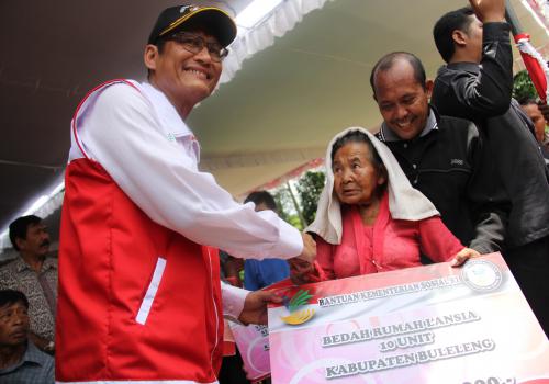 Penyerahan secara simbolis diserahkan langsung oleh Inspektur Jenderal Kementerian Republik Indonesia untuk Kabupaten Buleleng diserahkan secara simbolis kepada Lanjut Usia 10 Unit masing – masing sebesar Rp. 10.000.000,- pertahun, Total Rp. 100.000.000,- hari Sabtu, 22 Februari 2014 pukul 11.30 WITA di Lapangan Umum Desa Sudaji Kecamatan Sawan Kabupaten Bulelendisaksikan langsung oleh masyarakat dan tokoh – tokoh masyarakat.