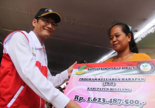 Penyerahan secara simbolis diserahkan langsung oleh Inspektur Jenderal Kementerian Republik Indonesia untuk Kabupaten Buleleng diserahkan secara simbolis Bantuan Program Keluarga Harapan (PKH) untuk 3.451 Rumah Tangga Sangat Miskin (RTSM) senilai Total Rp. 1.623.487.500,- untuk Kabupaten Buleleng hari Sabtu, 22 Februari 2014 pukul 11.30 WITA di Lapangan Umum Desa Sudaji Kecamatan Sawan Kabupaten Bulelengdisaksikan langsung oleh masyarakat, tokoh – tokoh masyarakat.